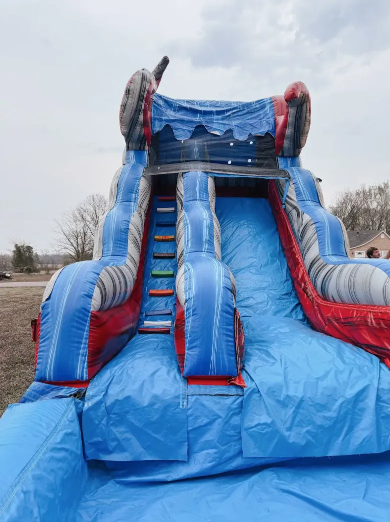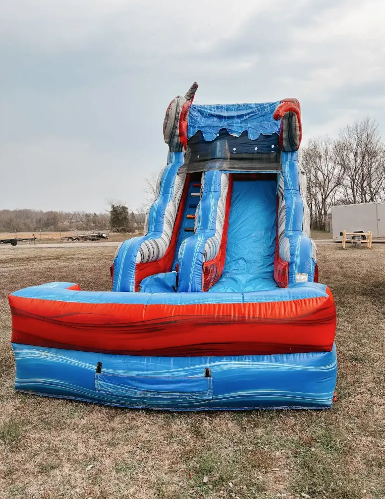 - Has slide- Pool on end can detach- Can be used wet or dryDimensions :Height 15 ft